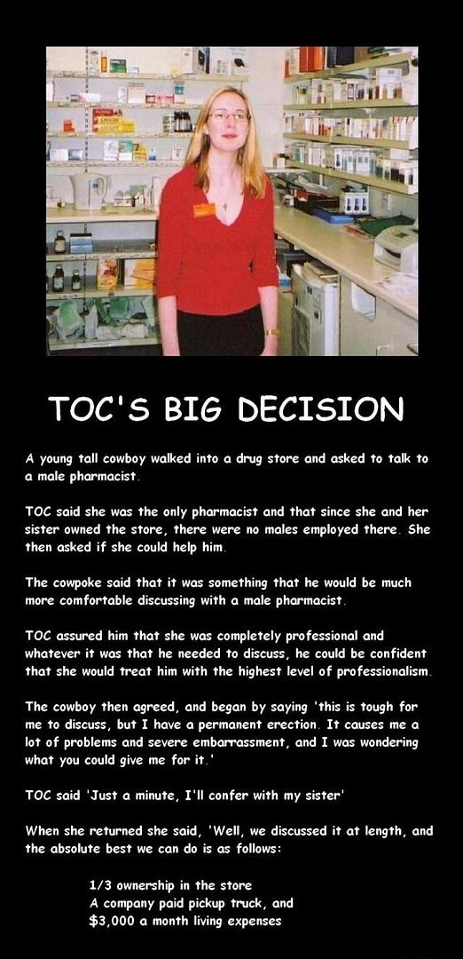 Thats just wrong on so many levels.....I'm starting to like everyones sense of humour around here, I just hope I won't need counciling after a few months of this...