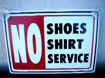To me it's a communications issue. Do you go to restaurants that have big signs outside saying that customers who are rude, ill-behaved, or penniless will be refused service? Probably not, because they don't advertize that, it's understood. Instead, they have signs saying what they offer.