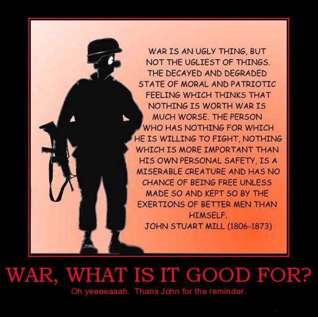 I disagree with you thinking real men run around in uniform killing people. While telling themselves they are "serving they're country".
