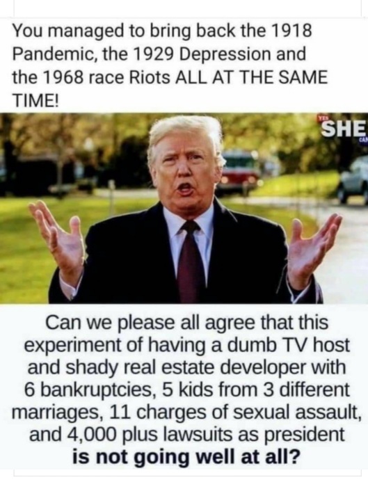 What a shit show down there. Yesterday, on news....Texas Govenor says we opened economy too soon. Duh. You were warned many times not to re open. Houston now a hotspot for Covid-19. Americans generally don't know what a pandemic is. They carry on like its hayfever. No social distancing, no mask wearing. Idiots. Keep the border closed for a long time. We don't need any tourists coming up here, especially to Vancouver Island. I saw a prediction, by end of October, 270,000 dead. WTF.