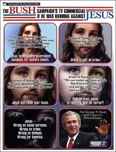 Now unfortunately it appears that you need a strong, no bullshit leader but make no mistake, you also need some diplomacy and statesmanship. Neither Bush nor Kerry are the full meal deal and are equally scary in their own way. Bush's "leadership" could potentially lead to the end of the world. Kerry will leave you very vulnerable which could ultimately result in even more severe retaliation, leading to the end of the world. Some choices. One's a pretend war hero, the other a privileged draft dodger. They both lie and they both "flip-flop". All politicians do and, hey, we're not any better off...our political landscape is pathetic too.