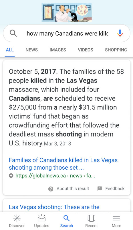 4 Canadians lost their Lives in Vegas, just over a year, and a half ago !