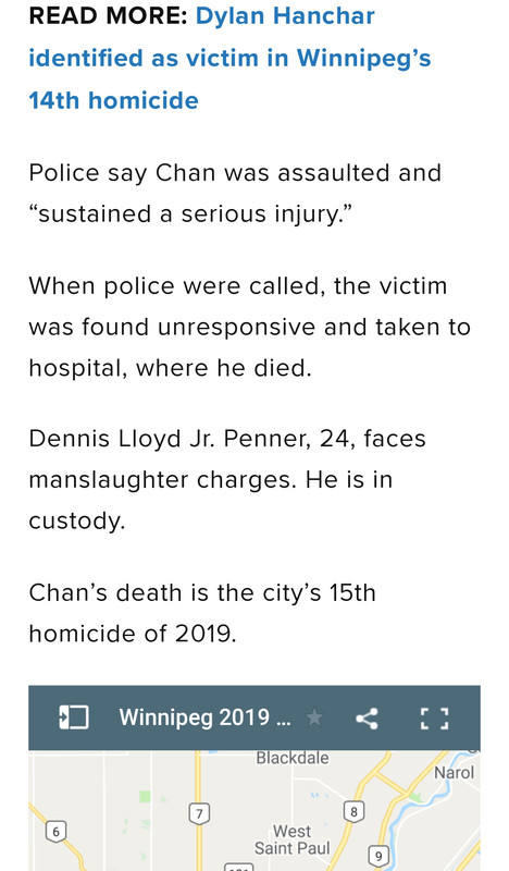 Wow 15 Murders in Winnipeg so far this Year, and it's not even halfway through the Year .
