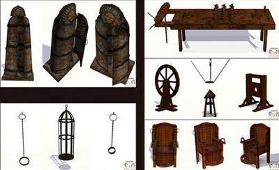 Ooooooh, that is lovely ironwork. The chains, tongs, an dagger are well organized indeed. Could use a little more 'cush factor' like a big furry armoir as a centre-piece. I would definately store my wine in there too!