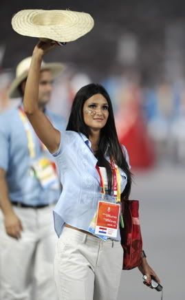 During Fourth-Place Medal's award-winning* live blog coverage of the Olympic Opening Ceremony, one question haunted our panel and reading audience, and it wasn't whether the fireworks were real or how they managed to do that cool display with the blocks. No, we didn't care about that stuff. All we wanted to know was, who was that gorgeous woman who marched into Beijing National Stadium with the Paraguayan delegation?