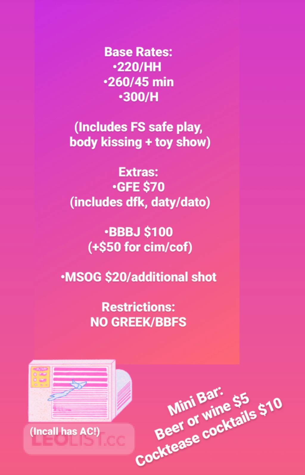 She has her own well air conditioned incall, and uses a nice new massage table. She greeted me dressed in a teeny bikini and robe with a smile, and instantly created a relaxed, welcome atmosphere.